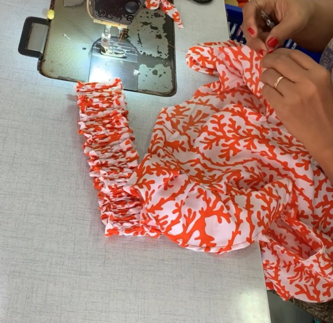 A happy team of 12 seamstresses work from a small family run factory outside Seminyak headed by the lovely Ratna. She has been in the clothing business for over 20 years and oversees the production process from pattern making to the finished article.